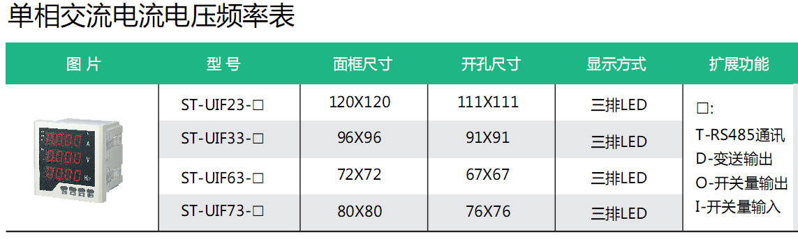 單相電壓實時測量單相電流功率基本功能變送輸出DC4- 20mA擴展功能通訊RS485接口MODBUS-RTU
